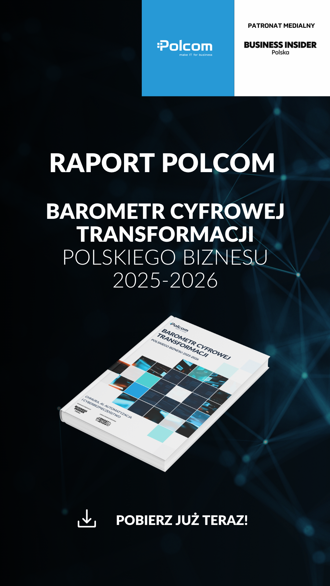 W odpowiedzi na te pytania powstał raport „Barometr cyfrowej transformacji polskiego biznesu 2025-2026. Chmura, AI, automatyzacja i cyberbezpieczeństwo”, opracowany przez Polcom we współpracy z red. SmartFactory, który został objęty patronatem medialnym Business Insider Polska.